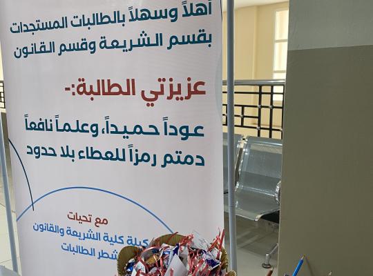 جامعة جازان: إدارة الإعلام استقبلت كلية الشريعة والقانون طالباتها المستجدات للفصل الدراسي الأول للعام الجامعي ١٤٤٤هـ بإشراف وحضور وكيلة الكلية الدكتورة زكرية بنت أحمد غلفان زكري حيث تم استقبال الطالبات المستجدات بمشاركة من سكرتارية وحدة الإرشاد