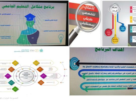 برعاية سعادة عميدة الكلية الجامعية بمحافظة الداير د. تنوير هندي، أطلقت وكالة الكلية للشؤون الأكاديمية بالاشتراك مع وحدة خدمة المجتمع بالكلية برنامجا متكاملا بعنوان "التعليم الجامعي.. خصائصه ومميزاته" عبر منصة زوم، لتأهيل طلبة المرحلة الثانوية بمحافظة