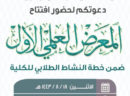 جامعة جازان: إدارة الإعلام برعاية وكيلة الجامعة لشؤون الطالبات الدكتورة فاطمة بنت عبدالعزيز عقيلي وبإشراف عميدة الكلية الجامعية بصبيا الدكتورة فاطمة محمد بريك افتتحت الكلية الجامعية بصبيا المعرض العلمي الأول ضمن خطة النشاط الطلابي للكلية في صالة