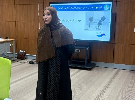نظّمت عمادة التطوير والجودة الورشة الثانية من البرنامج التأسيسي لضمان الجودة والاعتماد الأكاديمي (أساس 2)، تحت عنوان: "توصيف المقرر والبرنامج وتقرير المقرر"، قدّمتها الدكتورة الخنساء الشعبي مستشار ضمان الجودة. تطرقت الورشة إلى مجموعة من المحاور