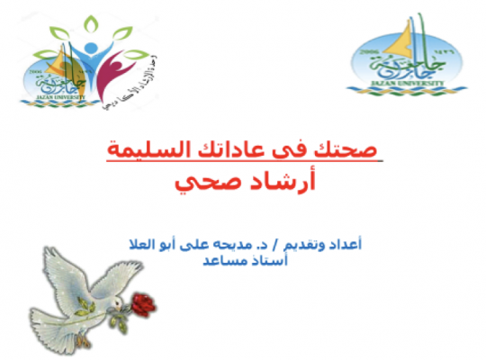 نظمت الكلية الجامعية بصبيا متمثلةً بوحدة الإرشاد الطلابي ندوة إرشادية بعنوان” صحتك في عاداتك السليمة " من ضمن ندوات الإرشاد الصحي وذلك يوم الاثنين الموافق 22/١١/٢٠٢١. قدمتها د. مديحة علي أبوالعلا رئيسة وحدة الإرشاد الطلابي. تم تنفيذ الندوة عبر تطبيق