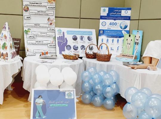 نفذت الكلیة الجامعیة بصبیا ممثلة في وحدة النشاط الطلابي بالتعاون مع كلیة التمریض وباشراف سعادة العمیدة د.فاطمة بریك في یوم الأربعاء الموافق ٢٠٢١/١١/١٨مبادرة الیوم العالمي لداء السكري تحت عنوان " بانضمامك لنا تحمي نفسك من داء السكري بعون الله " في