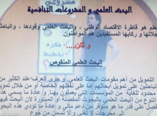 جامعة جازان: إدارة الإعلام نظمت وحدة البحث العلمي بالكلية الجامعية بالدائر بالتعاون مع وحدة النشاط الطلابي ورشة عمل بعنوان "البحث العلمي والمشروعات التنافسية" أعدتها ونفذتها الدكتورة عبير محمود يوسف بحضور عميدة الكلية الدكتورة تنوير هندي وعدد من
