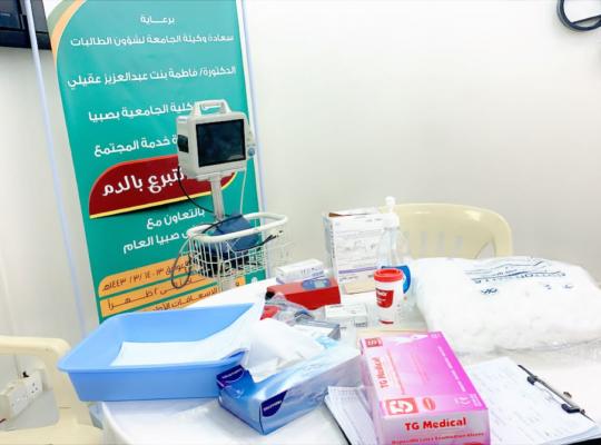 برعاية سعادة وكيلة الجامعة لشؤون الطالبات الدكتورة فاطمة عبدالعزيز عقيلي نفذت الكلية الجامعية بصبيا ممثلة في وحدة النشاط الطلابي بالتعاون مع وحدة خدمة المجتمع وبالشراكة مع مستشفى صبيا العام حملة للتبرع بالدم. نفذت الحملة يومي الأربعاء و الخميس (١٤-١٥