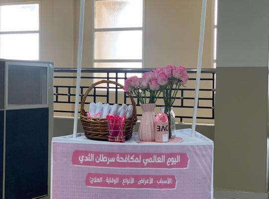 جامعة جازان: إدارة الإعلام نفذت وحدة النشاط الطلابي بكلية الشريعة والقانون شطر الطالبات اليوم العالمي لسرطان الثدي للطالبات للعام الجامعي الحالي حيث حرصت كلية الشريعة والقانون شطر الطالبات على إقامة مبـادرة التوعيـة الصحـية لهذا المـرض بإلقاء نظرة