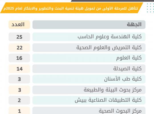 في إطار استراتيجيتها البحثية الطموحة، أعلنت جامعة جازان عن اجتياز 87 مشروعاً بحثياً من مقترحات منسوبيها للمرحلة الأولى من التمويل المقدم من هيئة تنمية البحث والتطوير والابتكار لعام 2025، موزعة على كليات ومراكز الجامعة، بما يعكس حرص الجامعة على تشجيع