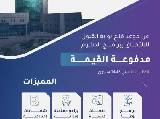 أعلنت جامعة جازان، ممثلة في معهد البحوث والخدمات الاستشارية، عن فتح باب القبول في برامج الدبلومات المدفوعة للعام الجامعي 1447 هـ حيث يبدأ التقديم يوم الثلاثاء الموافق 05/08/2025م، وينتهي يوم السبت الموافق 09/08/2025م. وأوضح عميد معهد البحوث والخدمات