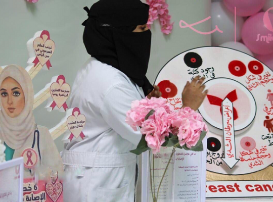 جامعة جازان: إدارة الإعلام نظمت وحدة العمل التطوعي بالتعاون مع كلية طب الأسنان ممثلة بنادي ابتسامة الطلابي حملة للتوعية بأهمية الفحص المبكر لسرطان الثدي والتعريف به ونشر ثقافة الفحص الدوري وأهميته في رفع نسبة الشفاء، وذلك من خلال عربة تحتوي على
