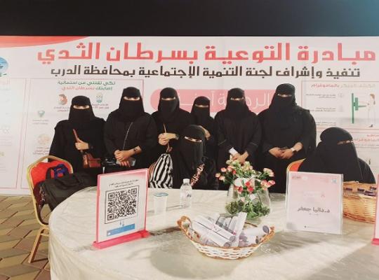 جامعة جازان: إدارة الإعلام شاركت الكلية الجامعية بمحافظة الدرب في حملة التوعية بسرطان الثدي والتي دشنها مدير مستشفى الدرب العام علي بن محمد أبوشقارة وبحضور رئيس لجنة التنمية الاجتماعية بالدرب عبدالعزيز بن محمد الشعبي ، والتي أقيمت في حديقة المملكة