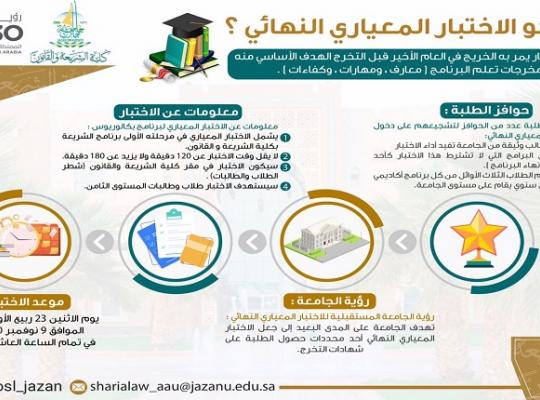 جامعة جازان: إدارة الإعلام تحت إشراف وكيلة كلية الشريعة والقانون شطر الطالبات د.زكرية زكري نظمت وحدة الخريجات لقاء عن بعد ((الاستعدادات للاختبارات المعيارية )) مع الطالبات المتوقع تخرجهن تناولت فيه أهمية هذا اللقاء والمقصود بها وموعدها, وتشجيعهن على