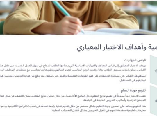 نفذ قسم اللغة الإنجليزية بالكلية الجامعية بالدايرممثلا بلجنة الاختبار المعياري ورشة تعريفية للطالبات المتوقع تخرجهن العام الحالي 2025 عن الاختبارات المعيارية تعريفها والهدف من إجرائها، قدمت الورشة الأستاذة عزيزة الفيفي حيث أوضحت أن هذه الورشة تهدف