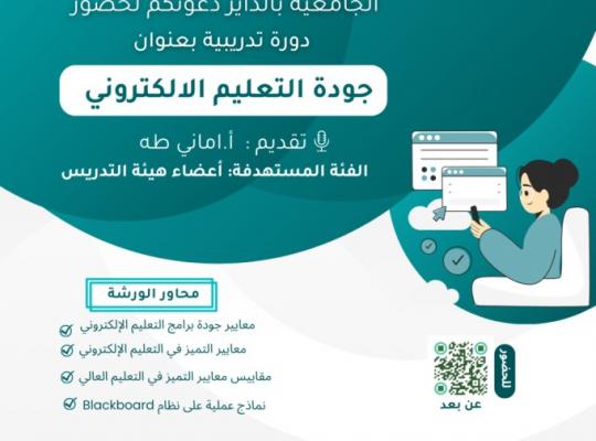 نفذت وحدة التعليم الإلكتروني في الكلية الجامعية بالداير ورشة عمل بعنوان "الجودة في التعليم الإلكتروني" موجهة لأعضاء هيئة التدريس. وقد ركزت الورشة على معايير الجودة في برامج التعليم الإلكتروني ومعايير التميز في التعليم العالي. كما تناولت الورشة