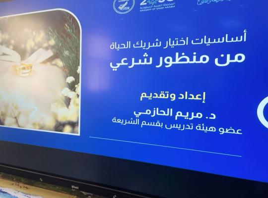رعت وكيلة كلية الشريعة والقانون د. زمزم محمد هباب علي الدورة التدريبية التي أقامتها وحدة الأنشطة الطلابية بعنوان (أساسيات اختيار شريك الحياة من منظور شرعي) من إعداد وتقديم د. مريم الحازمي عضو هيئة تدريس بقسم الشريعة لتحسين جودة الحياة واستمرار الحياة