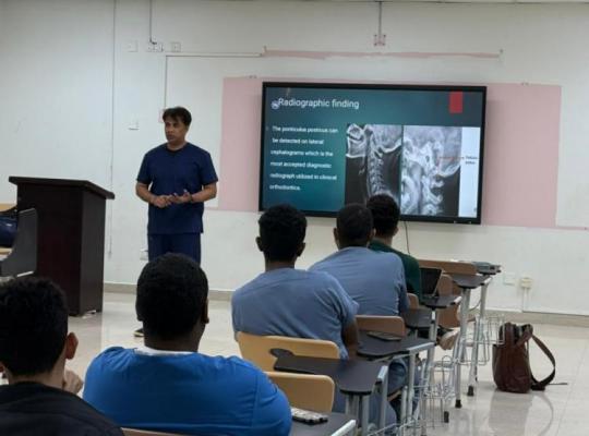 نفذت وحدة الأنشطة الطلابية بكلية طب الأسنان اللقاء التاسع لـ "نادي القراءة" تم خلاله استضافة الدكتور محمد نجم الدين، تحدث خلاله عن الطب وعلم التشريح، تحت عنوان: " انتشار النتوء الخلفي على القوس الخلفي للأطلس في المرضى الذين يعانون من أعراض وغير