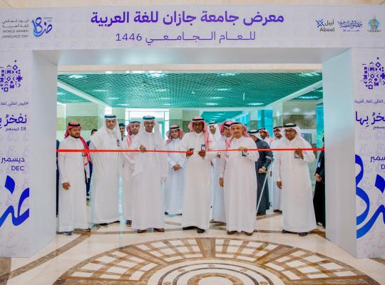 دشن سعادة رئيس جامعة جازان الأستاذ الدكتور محمد بن حسن أبوراسين صباح اليوم معرض اللغة العربية والفعاليات المصاحبة بالتزامن مع اليوم العالمي للغة العربية ببهو البرج الإداري بالجامعة بحضور وكلاء الجامعة وتنظيم من قبل عمادة شؤون الطلاب وكلية الفنون