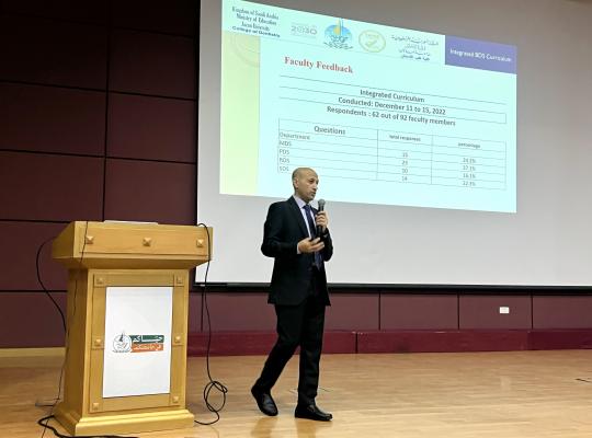 عقدت كلية طب الأسنان محاضرة شاملة حول الخطة الدراسية المدمجة قدمها الدكتور ماجد حمادي تهدف إلى تحديث الخطة الدراسية الحالية من خلال دمج مجموعة من المقررات ذات العلاقة. تسعى الكلية من خلال هذا التحول إلى إعداد أطباء ذوي كفاءة عالية، قادرين على
