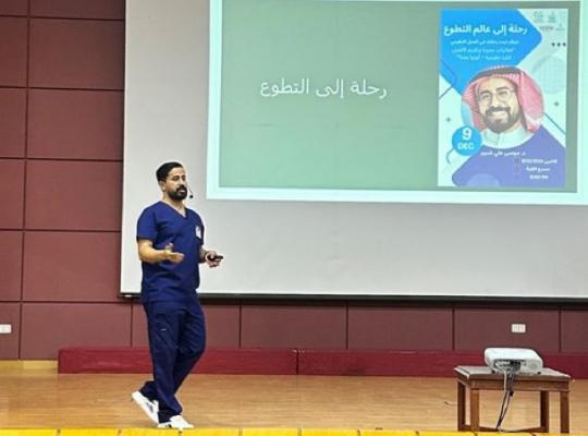 نظمت كلية طب الأسنان ورشة عمل بمناسبة يوم التطوع السعودي والعالمي قدمها الدكتور موسى شبير وتناولت أهمية العمل التطوعي في تعزيز القيم الإنسانية وتطوير المجتمع، مع تقديم أمثلة حية على تجارب تطوعية ناجحة. وشهدت الورشة تفاعلًا من منسوبي الكلية، حيث شارك