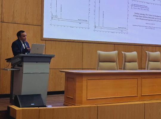 جامعة جازان: إدارة الإعلام أقام مركز البحوث الصحية بجامعة جازان محاضرة علمية قدمها الباحث بالمركز الدكتور ضياء الرحمن، تناولت أهمية التحقق من صحة الطريقة التحليلية باستخدام تقنيات الكروماتوغرافيا السائلة عالية الأداء (HPLC) في مجال اكتشاف الأدوية