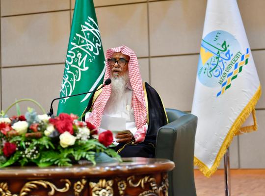 جامعة جازان: إدارة الإعلام استضافت جامعة جازان المحاضرة العلمية التي قدمها مفوض الإفتاء بمنطقة جازان فضيلة الشيخ محمد بن شامي شيبة بعنوان: "الشريعة والأمن" التي نظمها فرع الرئاسة العامة للبحوث العلمية والإفتاء بالمنطقة ضمن مبادرة “الشريعة والحياة”
