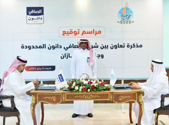 جامعة جازان: إدارة الإعلام رعى سعادة رئيس جامعة جازان الأستاذ الدكتور محمد بن حسن أبو راسين توقيع اتفاقية تعاون بين الجامعة وشركة الصافي دانون المحدودة ظهر اليوم الأربعاء بمكتبه بالبرج الإداري في المدينة الجامعية، بحضور وكلاء الجامعة ومدير الاتصال