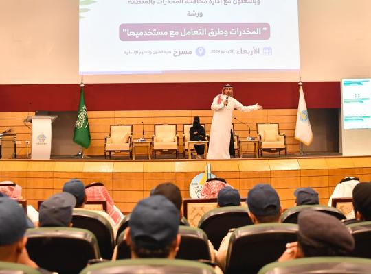 جامعة جازان: إدارة الإعلام أقامت جامعة جازان ممثلة في الإدارة العامة للسلامة والأمن الجامعي ورشة عمل بعنوان "المخدرات وطرق التعامل مع مستخدميها" بالتعاون مع الإدارة العامة لمكافحة المخدرات بالمنطقة بحضور منسوبي ومنسوبات الأمن الجامعي. وتضمنت الورشة