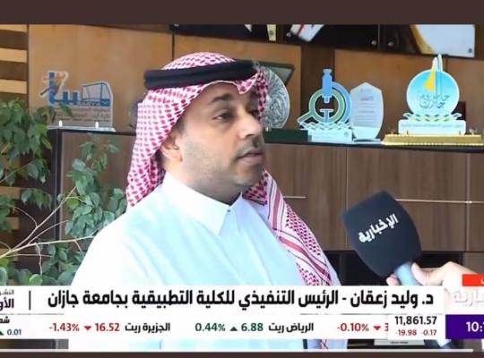 جامعة جازان: إدارة الإعلام تحدث الرئيس التنفيذي لـ الكلية التطبيقية بالجامعة د. وليد زعقان في برنامج اليوم على قناة الإخبارية حول برامج الكلية النوعية والمتاحة للقبول لهذا العام ١٤٤٦ هـ. موضحا أنه قد تم اعتماد عدد (5) برامج لهذا العام الأكاديمي وهي (
