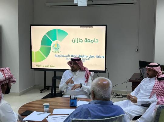 جامعة جازان: إدارة الإعلام نفذت عمادة التطوير والجودة ممثلةً في وحدة متابعة تنفيذ الخطة الاستراتيجية ووكالة العمادة للتطوير والجودة ورشة عمل بعنوان متابعة الخطة الاستراتيجية (المراجعة -الأداء- التحسين الرؤية و الرسالة) بحضور عميد عمادة التطوير