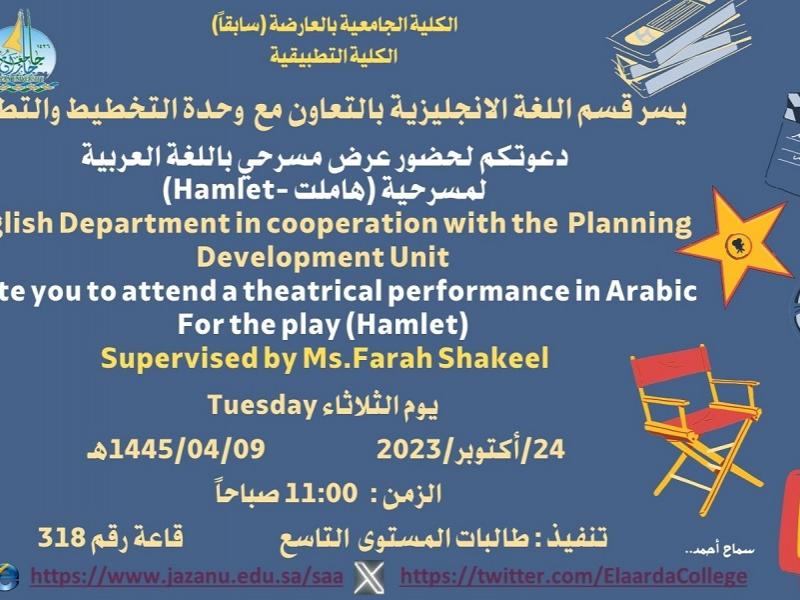 تم تنفيذ العرض المسرحي باللغة العربية لمسرحية (هاملت)