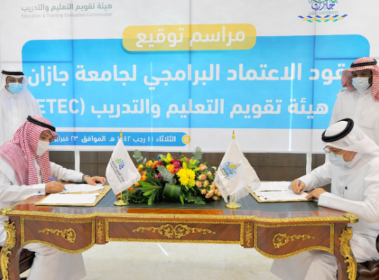 Jazan University signed with the Education & Training Evaluation Commission, represented by the National Commission for Academic Accreditation and Assessment, a number of program accreditation contracts. At the agreement signing were present, His