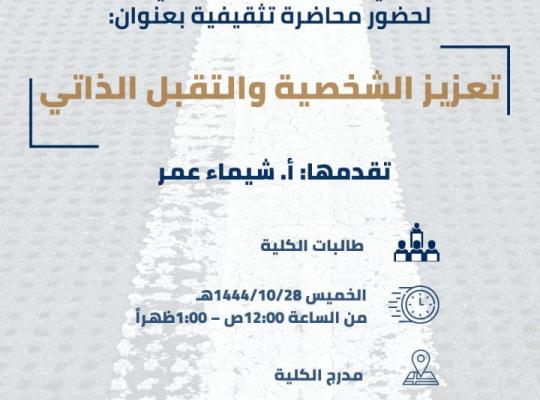 An educational lecture entitled "Promotion of Personality and Self-Acceptance" at the Applied College in Samtah and the University College in Samtah (formerly)