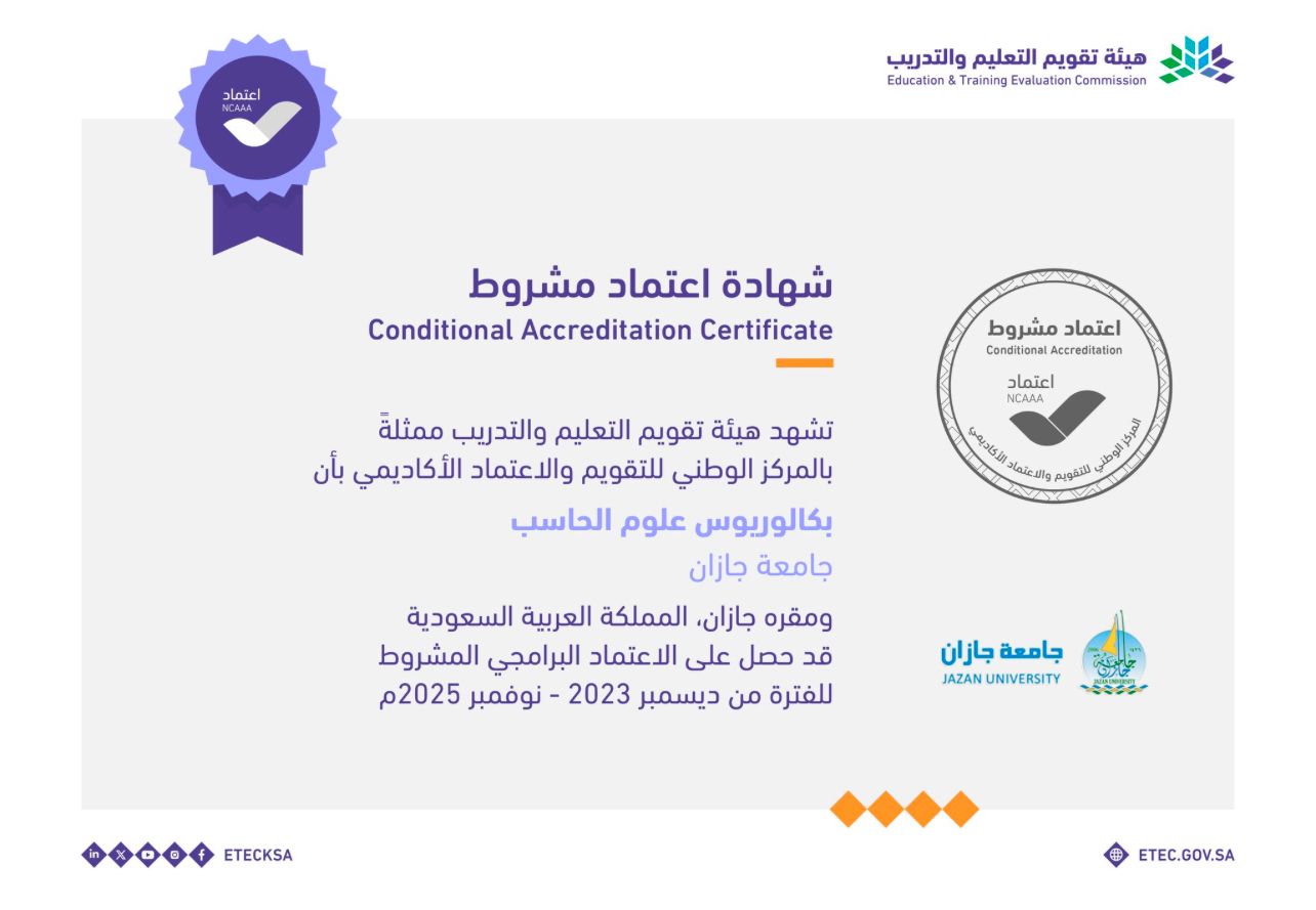 The program of Computer Science (Bachelor)-NCAAA Conditional Accreditation- December 2023-November 2025.