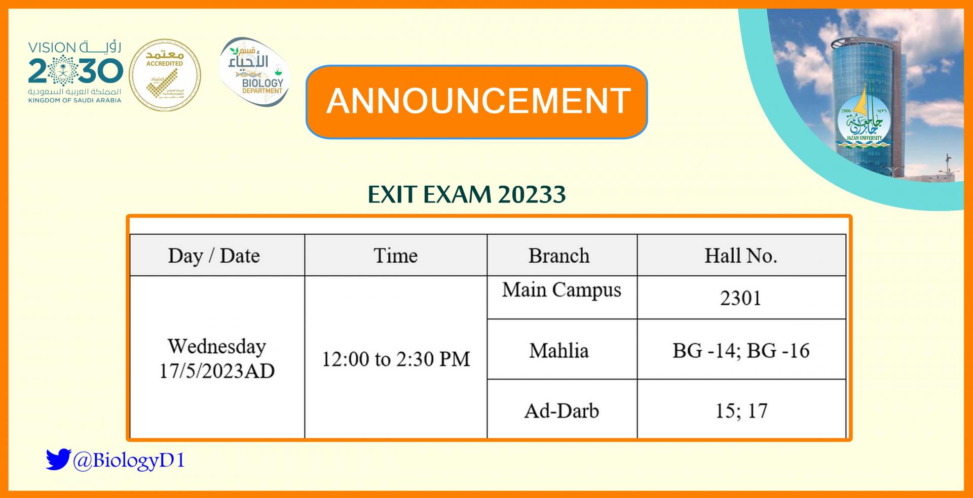 Exit Exam Manual : To view click here Exit Exam Registration Form