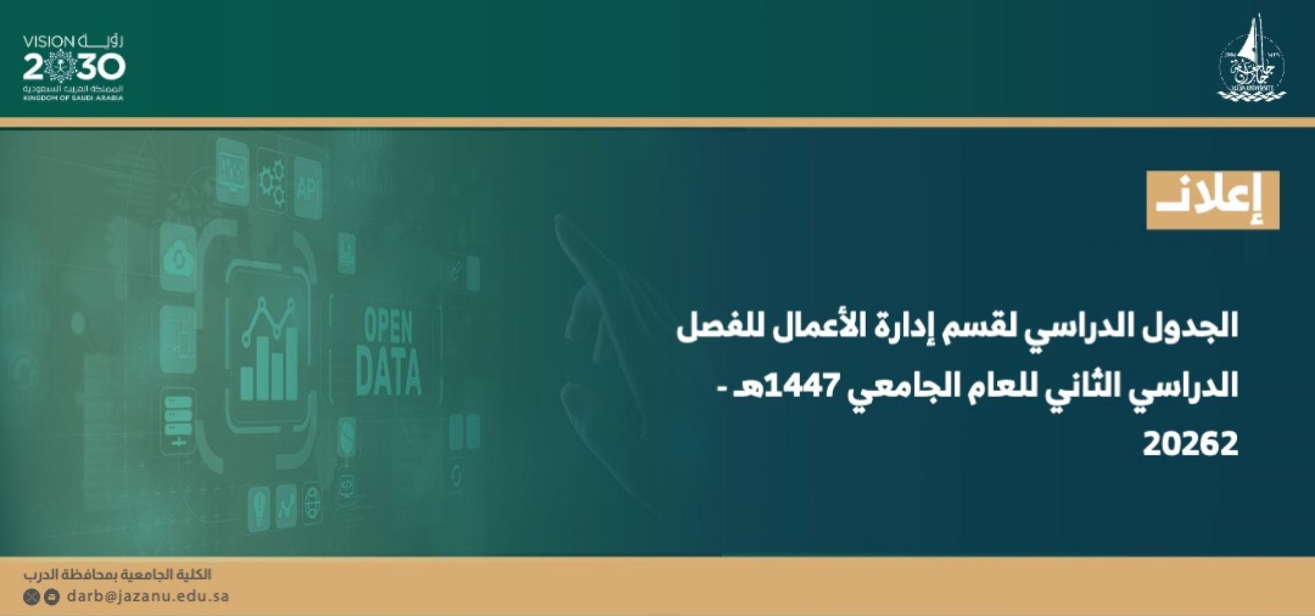 The department was established in 1431 AH to be a building block of the University College of Al-Darb, a scientific tributary of science and knowledge, and a major supporter towards achieving the desired comprehensive development based on distinguished academic programs of high quality that meet the needs of the labor market with graduates equipped with distinctive skills…