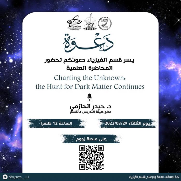 Charting the Unknown: the Hunt for Dark Matter Continues 24 Sha’ban 1443 Physics Department Media Center Latest News University College of Al-Darb held a workshop entitled "Zarqaae Initiative: Steps Towards Better Use of Water " Visit general education schools Jazan University Honored for Implementing the "Platforms Code" on Its e- Portal PLO Exit Exam 2025 Events 27Rajab1446 Enhancing security, safety, infection control, and first aid in laboratories 24Jumada Al-Ula1446 TestEvent1 19Rabi’ Al-Thani1446 "International Translation Day" 27Rajab1445 “Enhancing the Quality of Listening and Speaking Skills and Constructive Community Communication” Program
