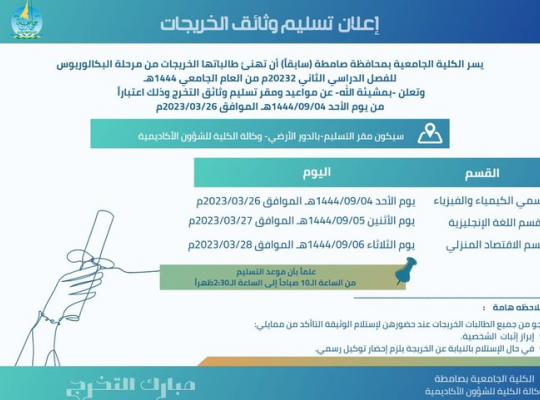 The date for submitting the documents of female graduates at the University College of Samtah (formerly)