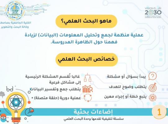 An educational series entitled "Research Illuminations" aimed at developing knowledge and research skills at the Applied College in Samtah and the University College in Samtah (previously)