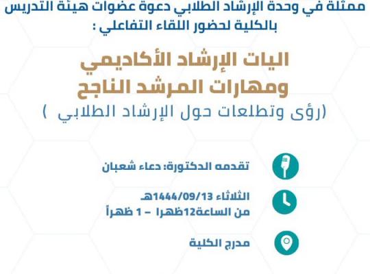 An interactive meeting entitled "Mechanisms of academic advising and the skills of a successful mentor" at the Applied College in Samtah and the University College in Samtah (formerly)