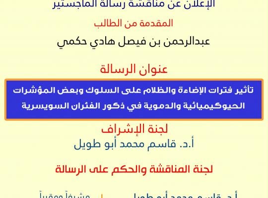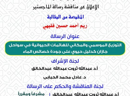 Announcement of the master's discussion for the student Reem Ahmed Faqihi