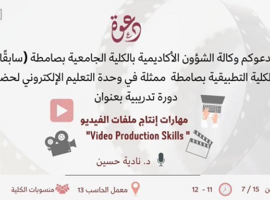 A course entitled "Video Production Skills" at the Applied College in Samtah and the University College in Samtah (formerly)