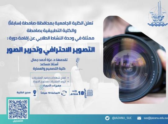 A course entitled "Photography and Image Editing" at the Applied College in Samtah and the University College in Samtah (formerly)