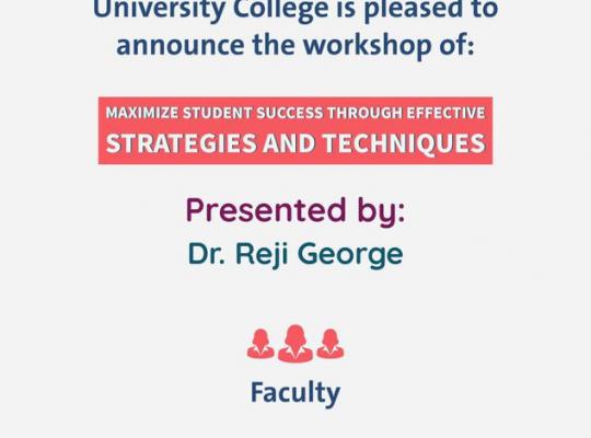 A workshop entitled "Maximize student success through effective strategies and techniques" at the Applied College in Samtah and the University College in Samtah (formerly)