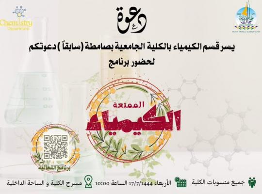 The Applied College of Samtah and the University College of Samtah (formerly) have the honor to invite you to attend the "Enjoyable Chemistry" program