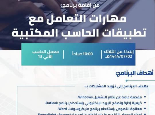 The Applied College in Samtah and the University College in Samtah (formerly) are honored to invite you to attend the "Skills for Dealing with Office Computer Applications" program