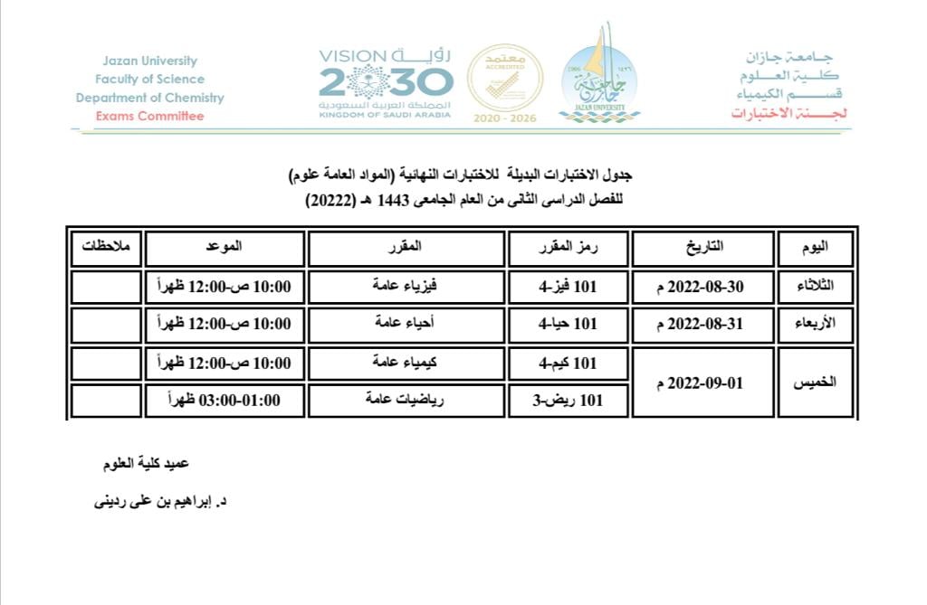 Makeup Final Exam for MATH 101 for the semester II -2021-22 will be held according to the schedule. For more details please see following Exam schedule. https://www.jazanu.edu.sa/sites/default/files/2022-08/makeup-finalexamM…
