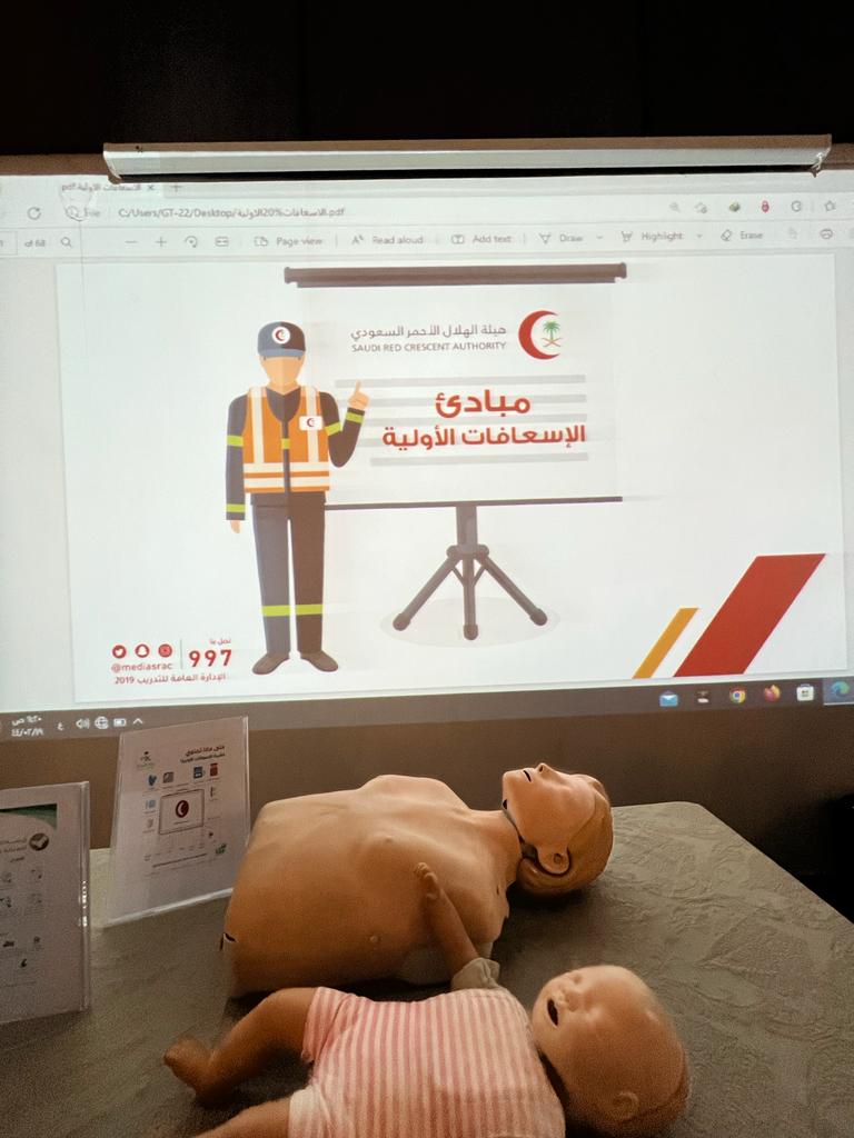 The University College of Samtah (formerly), in cooperation with the First Aid Unit at the General Hospital in Samtah, activate the "Basics of First Aid" course, under the supervision and implementation of members of the Saudi Red Crescent Authority and in cooperation with the General Hospital in Samtah. The course targeted the college students and its affiliates, and an awareness corner was organized to raise awareness of the importance of first aid and its benefit to the individual and society. The goal of first aid was also clarified, which is to preserve life and save lives, prevent further damage and maintain the stability of injured cases before the arrival of specialists, which enhances their recovery later. This has shown the first aid steps, which dealt with several such as: