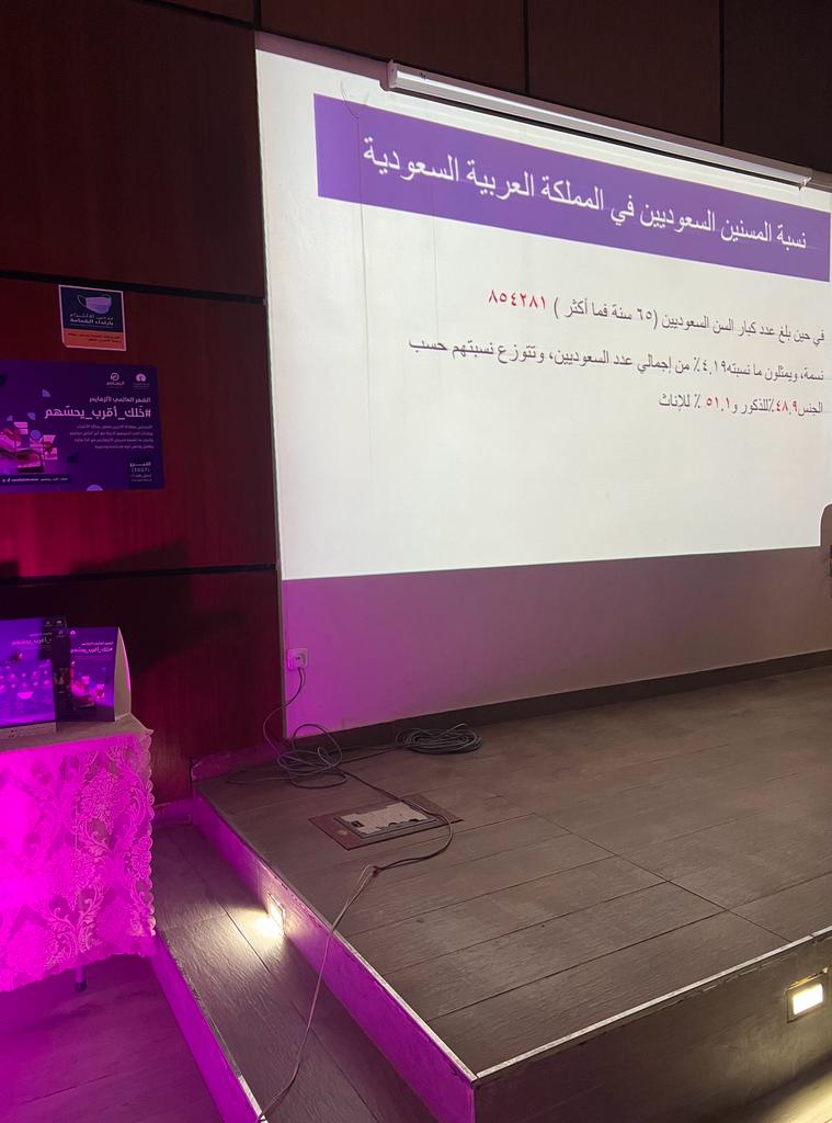 Coinciding with World Alzheimer's Month; In solidarity with the campaign of the Saudi Charitable Society to raise awareness of Alzheimer's disease, the Samtah Applied College carried out its awareness and educational campaign under the slogan "Be closer to make them feel." An awareness lecture was presented about Alzheimer's, which is a disease condition that includes a persistent decline in the ability to think, as well as behavioral and social skills. This negatively affects a person's ability to work independently. The rate of its prevalence in Saudi Arabia was discussed, and the early signs and indicators of the disease and how to avoid its development were mentioned. The seven stages of Alzheimer's disease, how it is diagnosed and treated, and some ways to prevent it were also mentioned. The lecture dealt with some useful guidelines for serving and providing care to the Alzheimer's patient. The Saudi Alzheimer's Charitable Society was also introduced to the most prominent voluntary services it provides to Alzheimer's patients and their families, and the support provided by the Society for studies and research in this field.