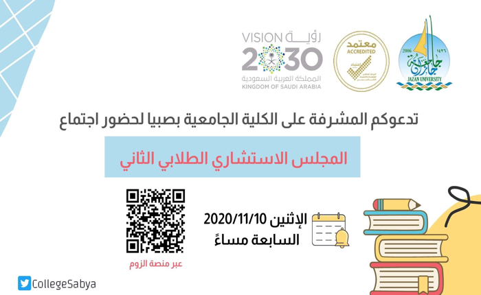 The Supervisor of the University College in Sabya, Dr. Fatima bint Muhammad Brik, the second meeting of the Student Advisory Council, and a number of important axes was discussed, most notably: the difficulties and obstacles facing female students during the e-learning period, the importance of continuous communication between members and students during this period, and ensuring the availability of scientific material and making it available to all students on the blackboard A board in addition to putting forward and discussing proposals and development ideas for the departments of the college.