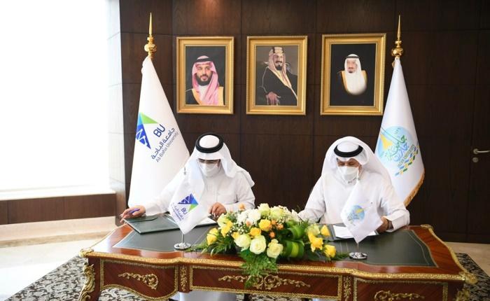 His Excellency the President of Jazan University, Prof. Mar’ei bin Hussein Al-Qahtani, and His Excellency the President of Al-Baha University, Prof. Abdullah bin Yahya Al-Hussein, signed an agreement to exchange academic experiences and cooperation in the fields (research, training, and development) and to conduct joint research in several scientific fields.