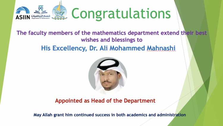 Appointment of Dr. Ali Mohammed Mahnashi as Department Head