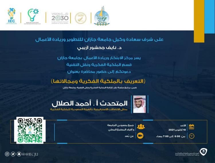 Then Mr. Ahmed Al-Salal talked about intellectual property, its definition and its fields, with some models presented.